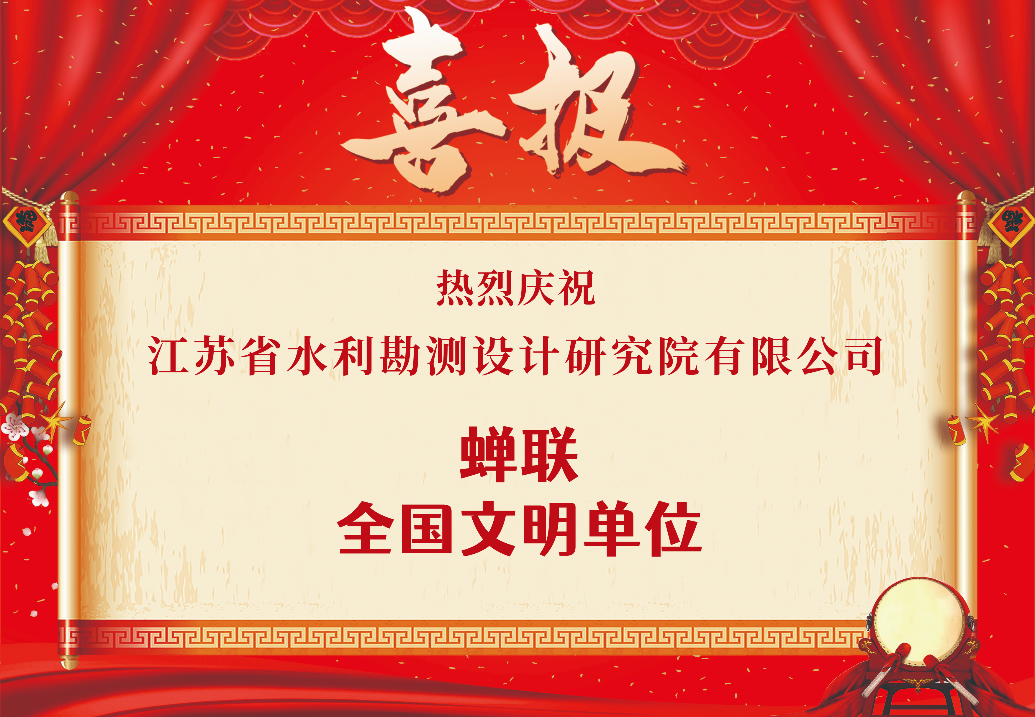 喜報(bào)!公司蟬聯(lián)“全國文明單位” 榮譽(yù)稱號(hào)